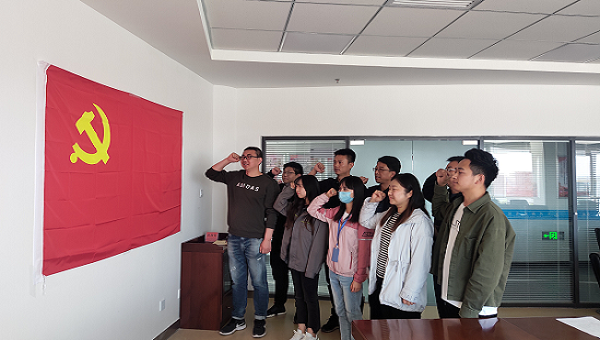 支部全体党员和入党积极分子在支部委员的带领下,举起右手,面对鲜红的党旗庄严宣誓,重温入党誓词,追忆入党初心,进一步坚定理想信念,增强责任感和使命感。