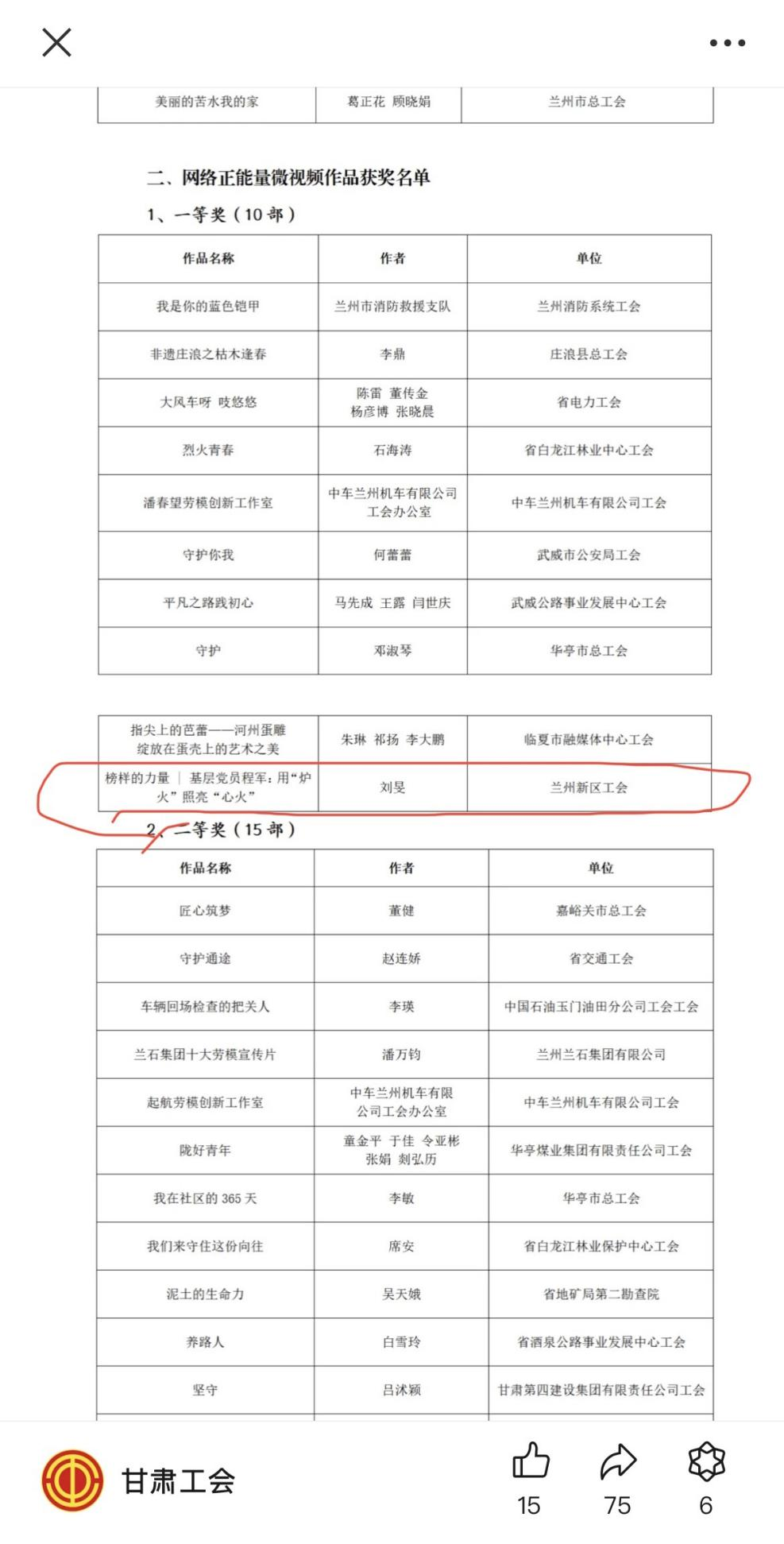 <h1 style="margin-top:0;margin-right:0;margin-bottom:0;margin-left:0;text-indent:0;padding:0 0 0 0 ;text-autospace:ideograph-numeric;text-align:center;line-height:38px;background:rgb(255,255,255)"><span style="font-family: 方正小标宋简体;color: rgb(51, 51, 51);letter-spacing: 1px;font-weight: normal;font-size: 29px">喜</span><span style="font-family: 方正小标宋简体;color: rgb(51, 51, 51);letter-spacing: 1px;font-weight: normal;font-size: 29px">报</span><span style="font-family: 方正小标宋简体;color: rgb(51, 51, 51);letter-spacing: 1px;font-weight: normal;font-size: 29px">！</span><span style="font-family: 方正小标宋简体;color: rgb(51, 51, 51);letter-spacing: 1px;font-weight: normal;font-size: 29px">化工热电</span><span style="font-family: 方正小标宋简体;color: rgb(51, 51, 51);letter-spacing: 1px;font-weight: normal;font-size: 29px">公司</span><span style="font-family: 方正小标宋简体;color: rgb(51, 51, 51);letter-spacing: 1px;font-weight: normal;font-size: 29px">工会在全</span><span style="font-family: 方正小标宋简体;color: rgb(51, 51, 51);letter-spacing: 1px;font-weight: normal;font-size: 29px"><span style="font-family:方正小标宋简体">省</span><span style="font-family:方正小标宋简体">2024年“网聚职工正能量 争做甘肃好网民”主题活动</span></span></h1><p style="text-autospace:ideograph-numeric;text-align:center;line-height:38px"><span style="font-family: 方正小标宋简体;color: rgb(51, 51, 51);letter-spacing: 1px;font-size: 29px;background: rgb(255, 255, 255)"><span style="font-family:方正小标宋简体">中荣获一等奖</span></span></p><p><span style="font-family: 方正小标宋简体;color: rgb(51, 51, 51);letter-spacing: 1px;font-size: 29px;background: rgb(255, 255, 255)">&nbsp;</span></p><p style="text-indent:43px"><span style=";font-family:仿宋_GB2312;font-size:21px"><span style="font-family:仿宋_GB2312">近日，甘肃省总工会和省委网信办联合开展的</span><span style="font-family:仿宋_GB2312">2024年“网聚职工正能量 争做甘肃好网民”主题活动获奖作品名单公布，由化工热电有限公司工会主导拍摄，石化集团工会监制审核，经兰州新区工会推荐的视频作品《榜样的力量 | 基层党员程军：用“炉火”照亮“心火”》在甘肃省1515部优秀作品中脱颖而出，荣获一等奖。</span></span></p><p style="text-align: center;"><img src="../../hdupf/img/202412/202412031733197497931288.png" width="606" height="1451" style="width: 606px; height: 1451px;"/></p><p style="margin-top:0;margin-right:0;margin-bottom:0;margin-left:0;text-indent:43px;padding:0 0 0 0 ;line-height:37px;background:rgb(255,255,255)"><span style=";font-family:仿宋_GB2312;font-size:21px"><span style="font-family:仿宋_GB2312">近年来，兰州新区化工热电有限公司工会积极发挥桥梁纽带作用</span><span style="font-family:仿宋_GB2312">,始终把表达和维护广大员工利益作为工会工作的出发点和落脚点。认真履行工会职能，积极维护职工权益，坚守并全力打造热电宣传阵地，</span></span><span style="font-family: 仿宋;letter-spacing: 0;font-size: 21px">科学</span><span style="font-family: 仿宋;letter-spacing: 0;font-size: 21px">运用和精准</span><span style="font-family: 仿宋;letter-spacing: 0;font-size: 21px">把握互联网发展趋势、传播特</span><span style="font-family: 仿宋;letter-spacing: 0;font-size: 21px">点</span><span style="font-family: 仿宋;letter-spacing: 0;font-size: 21px">，</span><span style="font-family: 仿宋;letter-spacing: 0;font-size: 21px">按照</span><span style="font-family: 仿宋;letter-spacing: 0;font-size: 21px">创新宣传阵地历史经验</span><span style="font-family: 仿宋;letter-spacing: 0;font-size: 21px">及</span><span style="font-family: 仿宋;letter-spacing: 0;font-size: 21px">实践要求</span><span style="font-family: 仿宋;letter-spacing: 0;font-size: 21px">，</span><span style="font-family: 仿宋;letter-spacing: 0;font-size: 21px">把</span><span style="font-family: 仿宋;letter-spacing: 0;font-size: 21px">一线职工风采和思想</span><span style="font-family: 仿宋;letter-spacing: 0;font-size: 21px">建设作为宣传思想文化工作的重</span><span style="font-family: 仿宋;letter-spacing: 0;font-size: 21px">点</span><span style="font-family: 仿宋;letter-spacing: 0;font-size: 21px">，</span><span style="font-family: 仿宋;letter-spacing: 0;font-size: 21px">不断</span><span style="font-family: 仿宋;letter-spacing: 0;font-size: 21px">拓展网络平台、丰富</span><span style="font-family: 仿宋;letter-spacing: 0;font-size: 21px">宣传</span><span style="font-family: 仿宋;letter-spacing: 0;font-size: 21px">内容、打造信息发布、</span><span style="font-family: 仿宋;letter-spacing: 0;font-size: 21px">促进</span><span style="font-family: 仿宋;letter-spacing: 0;font-size: 21px">工作交流</span><span style="font-family: 仿宋;letter-spacing: 0;font-size: 21px">。</span><span style="font-family: 仿宋;letter-spacing: 0;font-size: 21px">弘扬主旋律、传播正能量，立精神支柱、树价值标杆、育时代新人，使</span><span style="font-family: 仿宋;letter-spacing: 0;font-size: 21px">“</span><span style="font-family: 仿宋;letter-spacing: 0;font-size: 21px">优秀职工</span><span style="font-family: 仿宋;letter-spacing: 0;font-size: 21px">”</span><span style="font-family: 仿宋;letter-spacing: 0;font-size: 21px"><span style="font-family:仿宋">这个</span><span style="font-family:仿宋">“最大变量”释放“最大能量”，形成构筑网上网下“同心圆”的良好局面。</span></span></p><p><span style="font-family: 仿宋;letter-spacing: 0;font-size: 21px;background: rgb(255, 255, 255)"><span style="font-family:仿宋">&nbsp; &nbsp;风劲潮涌，自当扬帆破浪；任重道远，更需策