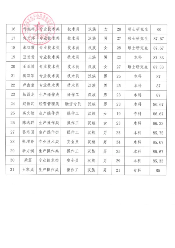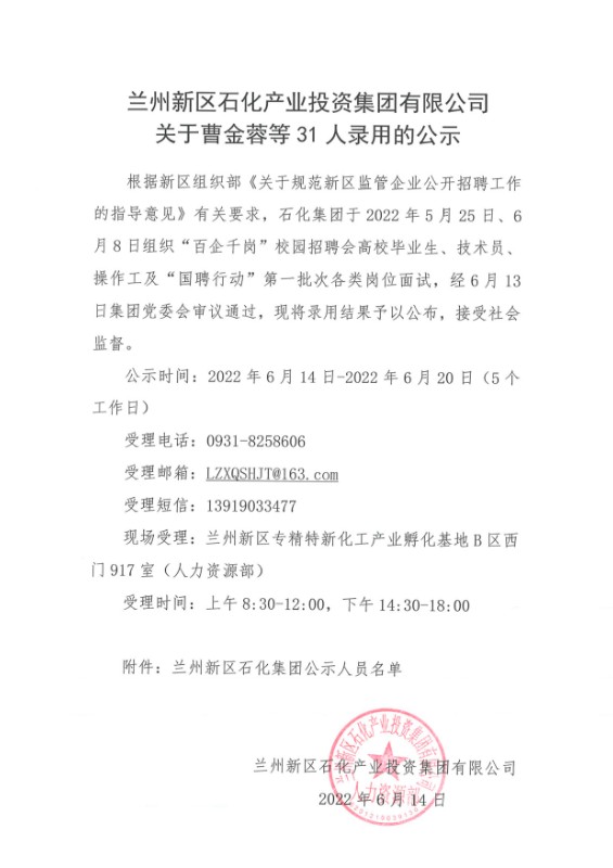 PA视讯关于曹金蓉等31人录用的公示