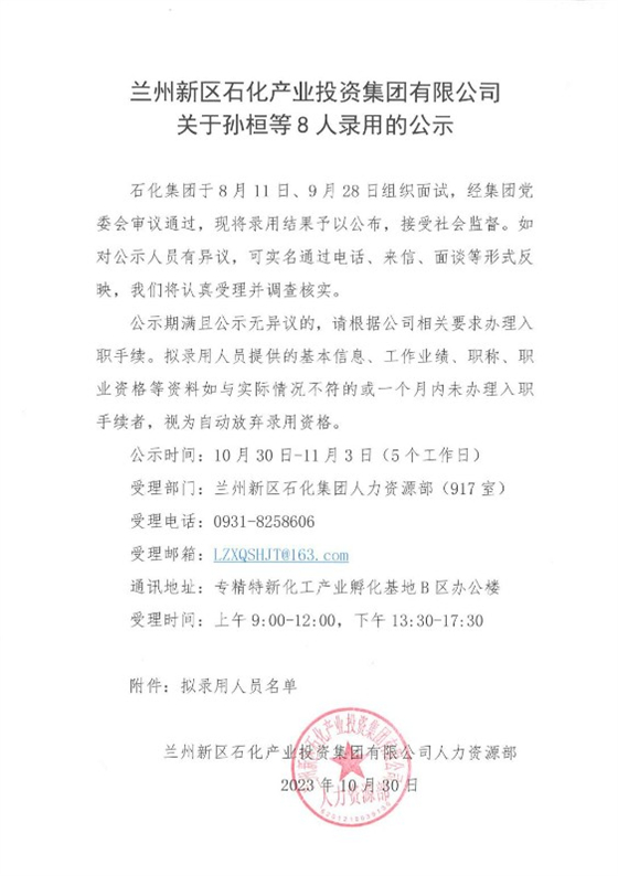 PA视讯关于孙桓等8人录用的公示