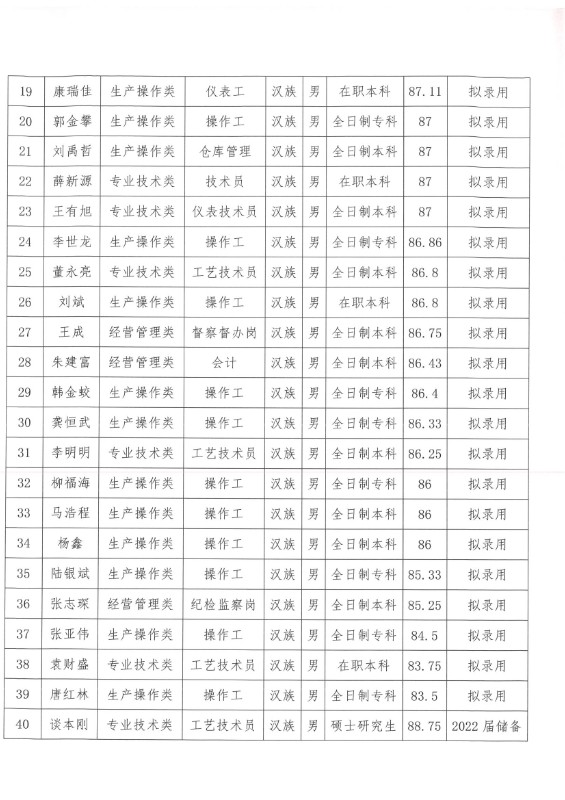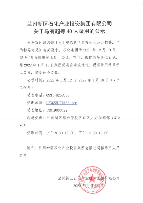 PA视讯关于马有超等40人录用的公示