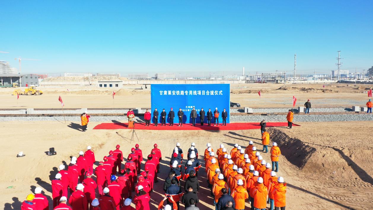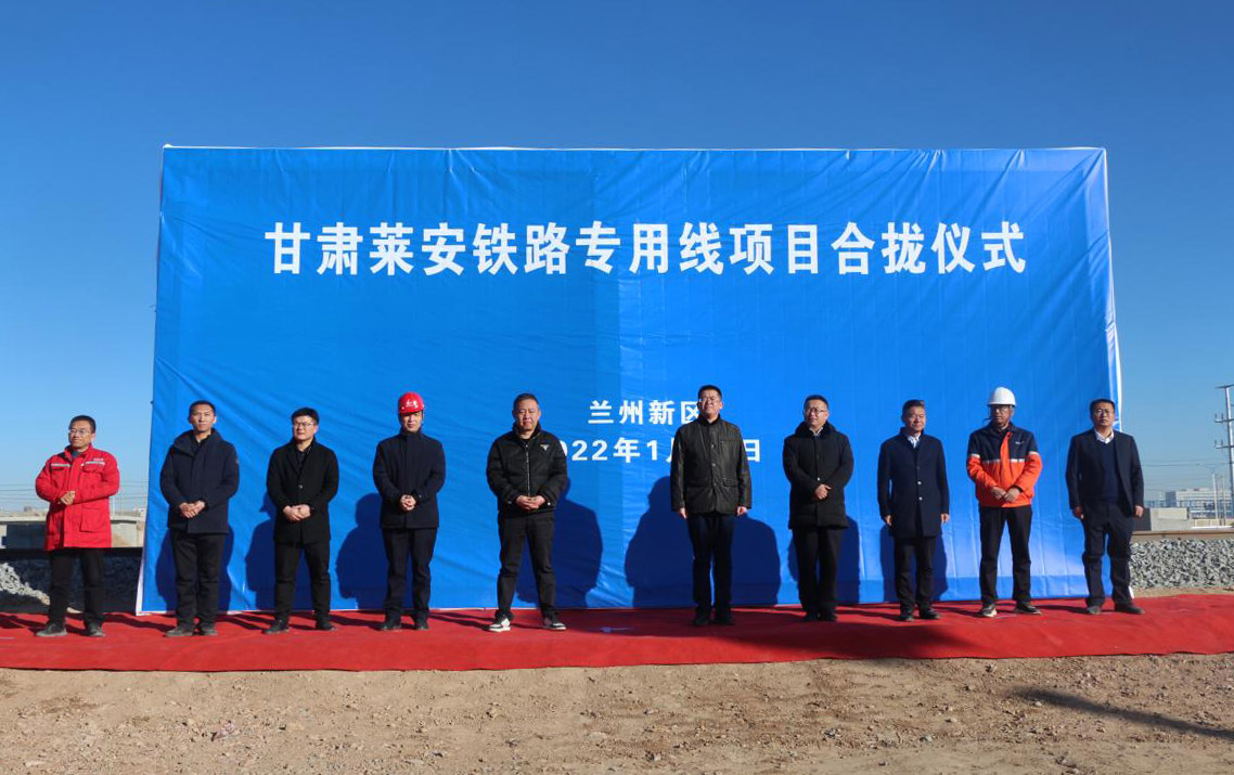 2022年1月19日上午10时,在化工物流园货场举行甘肃莱安铁路专用线项目合拢仪式。兰州新区PA视讯总经理姜锦、兰州新区商投集团总经理王坚民及中铁二十一局、甘肃莱安能源有限公司领导出席仪式。