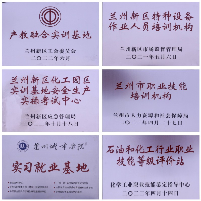 2022年4月,获批建立兰州新区博仁职业技能培训学校有限公司化工行业职业技能鉴定站,具备开展涵盖压缩机操作工、加氢裂化(处理)装置操作工、水生产处理工、工业废水处理工、烷基化装置操作工、有机合成工、化工总控工、化工检修电工、化工检修钳工、化工仪表维修工、化学检验员、农药生产工、化学合成制药工、药物制剂工、生化药品制剂工等15个工种的初级、中级、高级职业资格认定的资质。