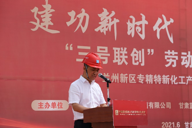 6月21日上午,专精特新化工产业孵化基地项目C区的“三号联创”劳动竞赛活动启动仪式正式拉开帷幕,石投集团总经理姜锦、总工程师叶得强、总顾问王安祥,甘肃蓝野建设监理公司副总经理李克义,中建四局西北公司兰州分公司总经理夏小兵出席活动,150余名项目建设者参加启动大会。