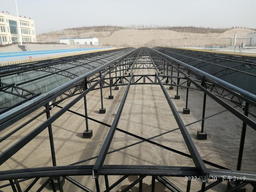 近日,博石环保公司2#事故池加盖主体结构全部完成,进入最后收尾阶段。污水处理项目(一期)事故池加盖项目施工内容包括污水处理厂1#、2#两座低浓事故池加盖及除臭通风管道安装施工。本项目完成后将消除低浓事故池内污水散发的污染有害气体,博石环保公司空气质量将达到明显改善、提升环保健康标准。