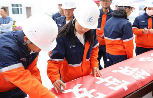 活动中,专精特新公司安全环保部全面部署了“安全生产月”活动的各项工作任务,并组织所有人员在“消除事故隐患,筑牢安全防线”主题横幅上进行签名承诺。