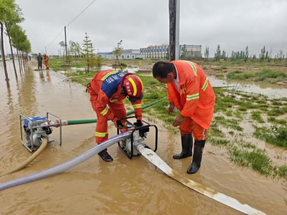 面对这一紧急情况,PA视讯久泰服务公司迅速联合秦川园区消防队展开抢险救援行动,此次应急救援队伍共计人力108人,清扫车2辆,水车4辆,消防车2辆,水泵5台,处理路面积水区域 8 处,累计抽水900余方,对 6 处路面淤泥进行了清理,并成功恢复车辆通行道路 3 处。